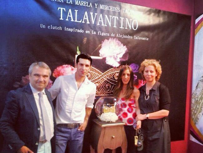 09-05-2012 Alejandro Talavante asistió a la presentación de "Talavantino", el bolso diseñado por su hermana Mercedes y que está inspirado en el diestro. El diseño de la pieza está basado en los bordados taurinos y en la estética de los años veinte, creado con una manufactura casi artesanal y en el que el representativo tono lila pálido del traje de luces se conjuga con el hilo de oro de los bordados y con la pedrería.